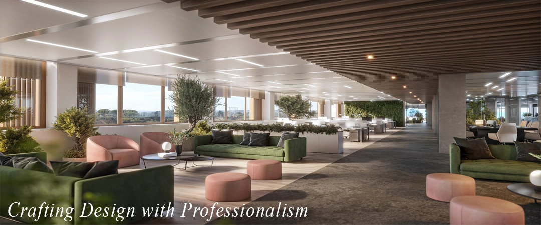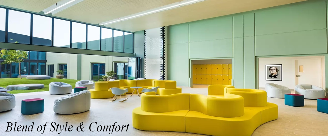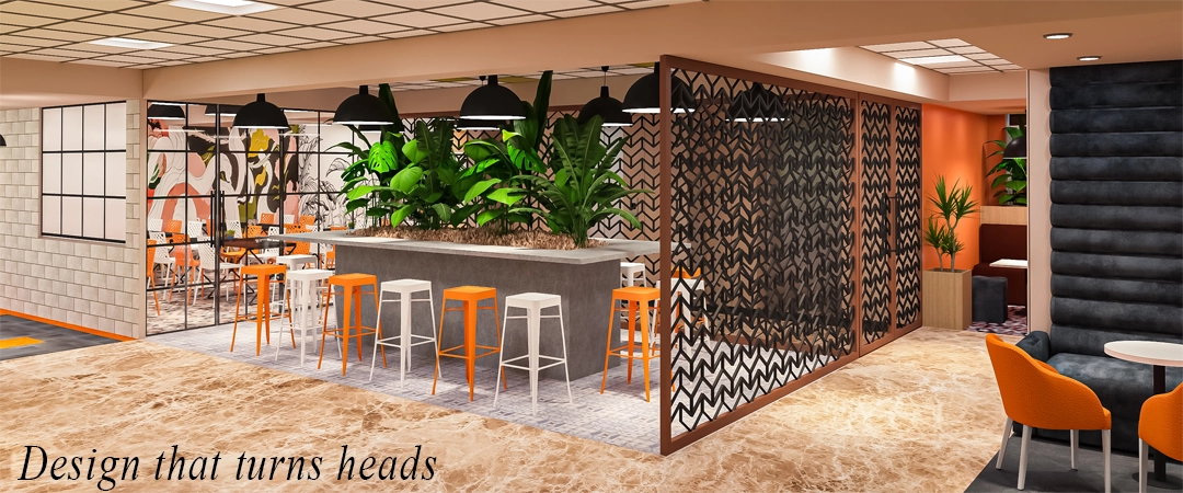 Running through the lines that follow each other, contract with each other, lines that soften or modify other producing a harmony. Harmony of lines could produce abstract design creating geometrical shape at places. Abstract can bring out an element of impression and sort of freedom is found in the shape formed. The pattern formed could be less rigid and formal thus creating a vibe for one to explore the boundaries. Adding to the space are the colors vibrant and soothing enough to make the space comfortable to function considering employees wellness.